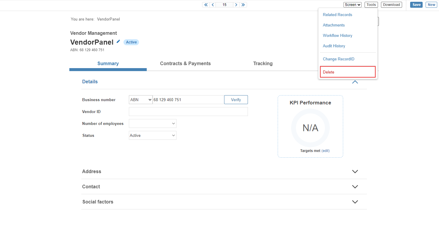 Note: If the contract is still displaying the previously linked vendor record, refresh your browser window to see the correct vendor details.